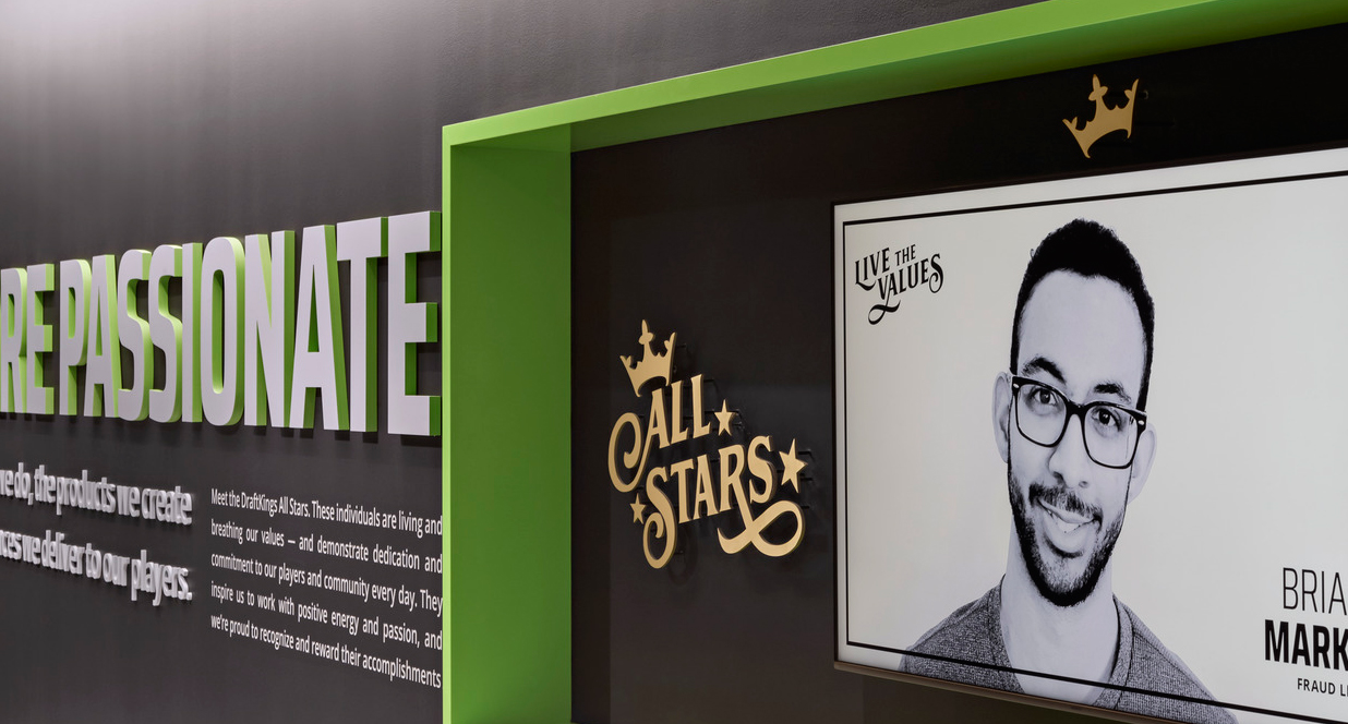 At Draft Kings the IA team worked to build a double-wide building plate worth of graphic treatments. I worked to document and detail the designer's efforts, including guiding the package through CD and CA.